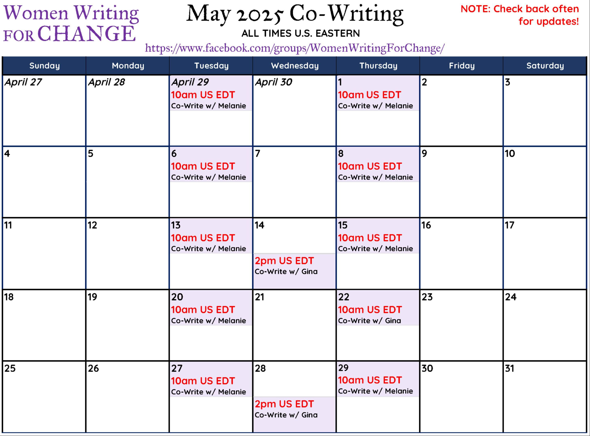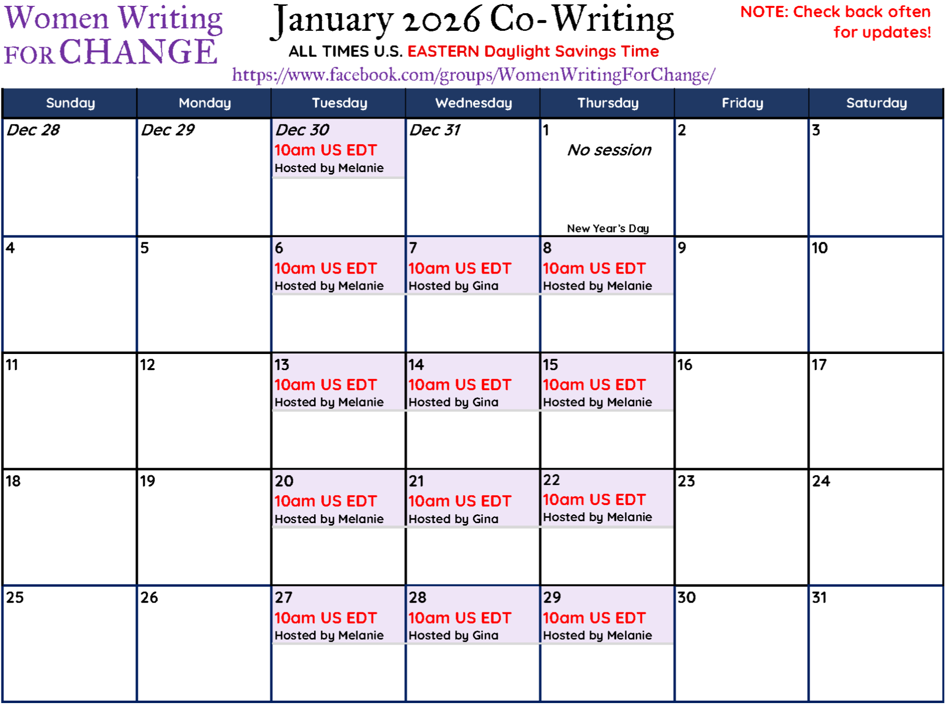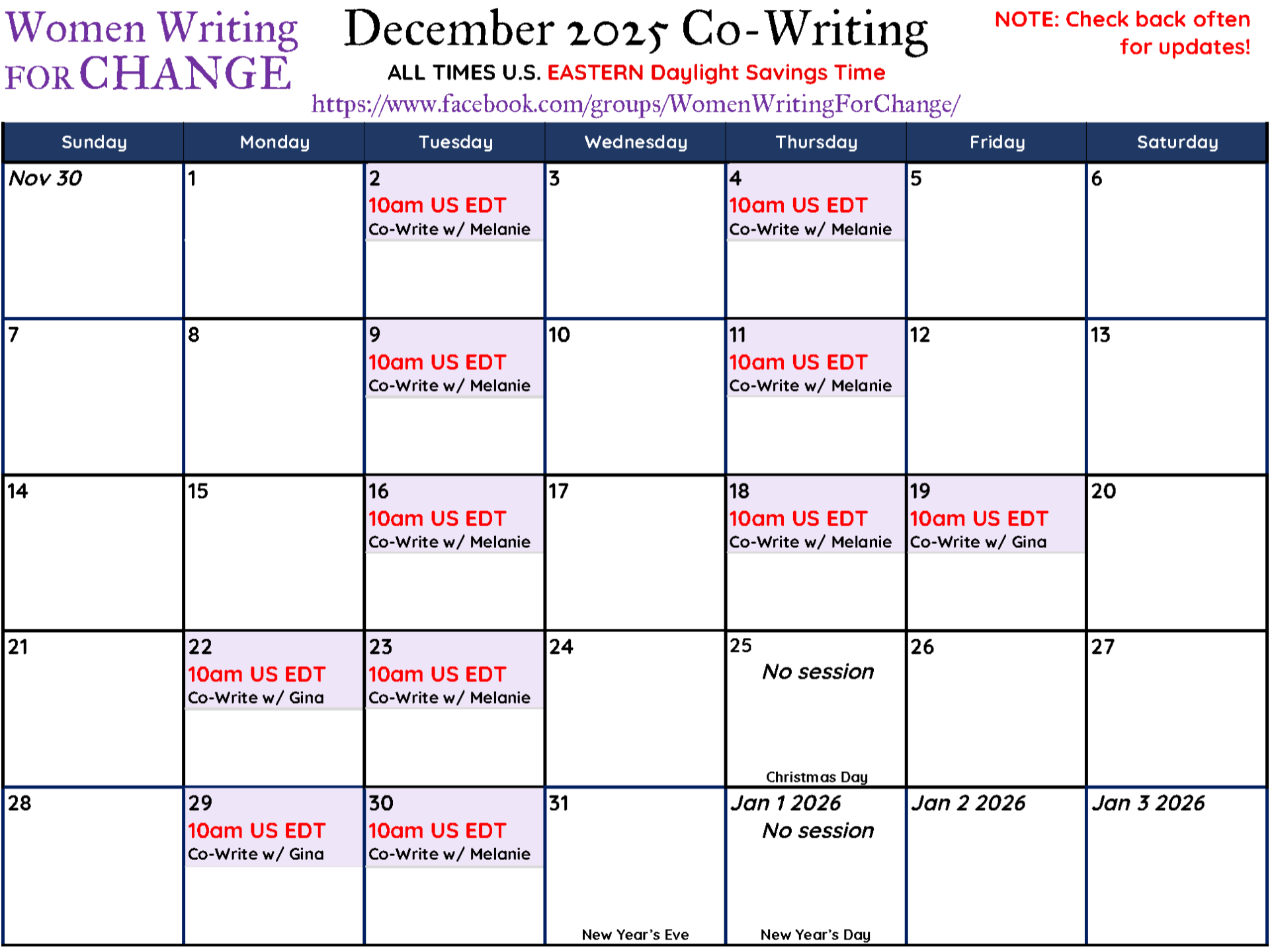 Join Women Writing for CHANGE on Facebook where you'll get a Zoom link for free online sessions, writing schedule reminders and updates, and so much more!